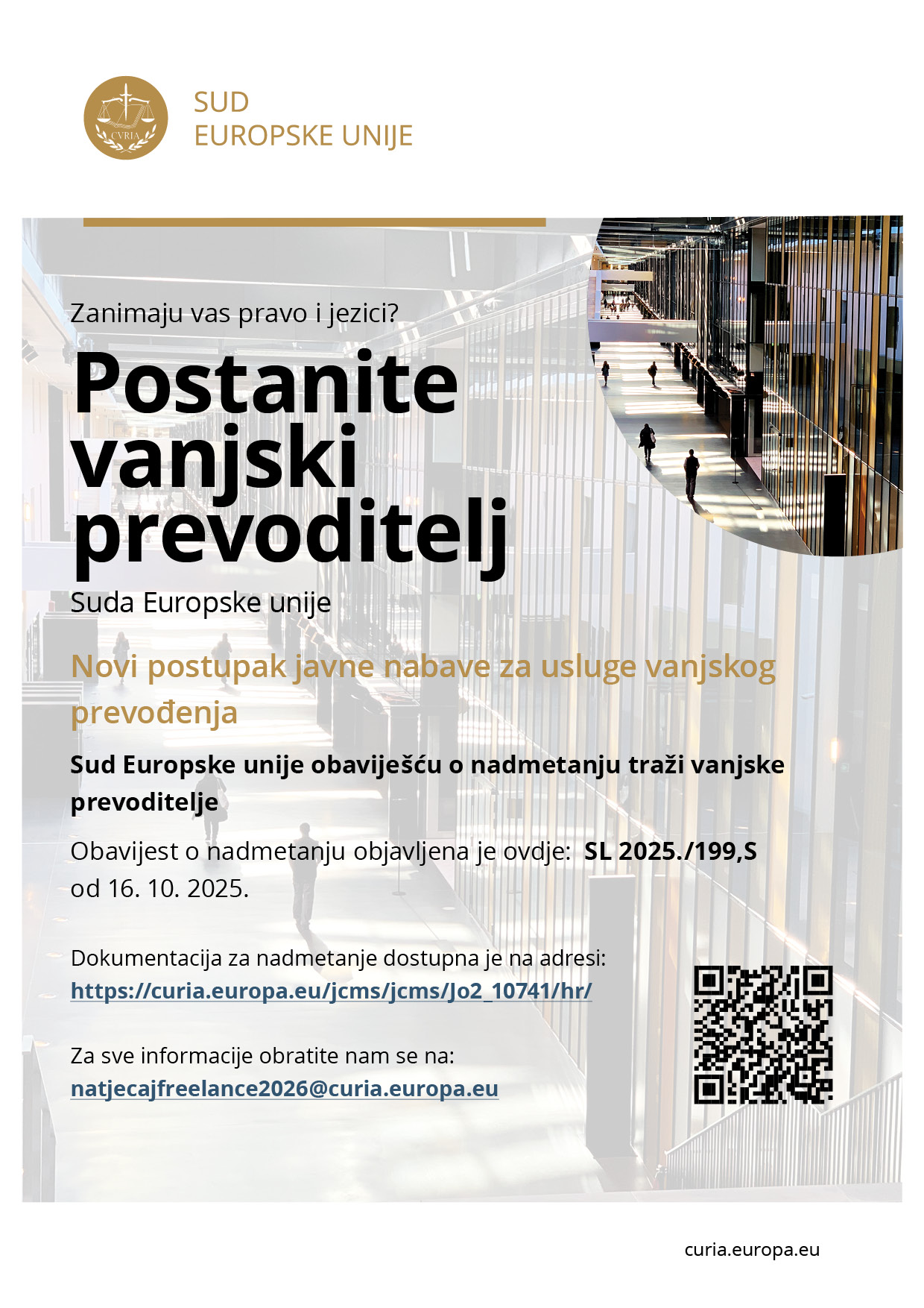 Sud Europske unije obaviješću o nadmetanju traži vanjske prevoditelje